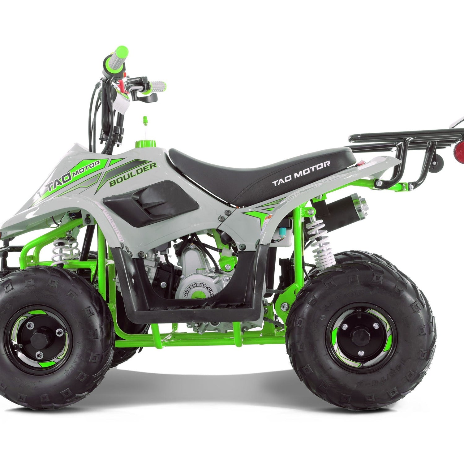 The TaoMotor Boulder X 110cc Kids ATV is designed for kids who crave adventure! With its 110cc 4-stroke engine and automatic transmission, this ATV delivers a powerful yet manageable riding experience. The new Boulder X model offers an updated body style and multiple color options, making it a standout on any trail. Safety is a priority with features like a speed limiter and remote kill switch, giving parents peace of mind.