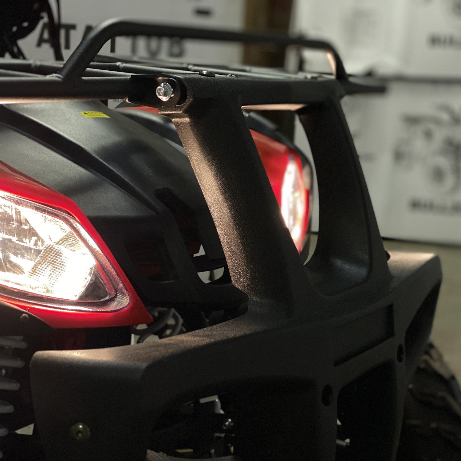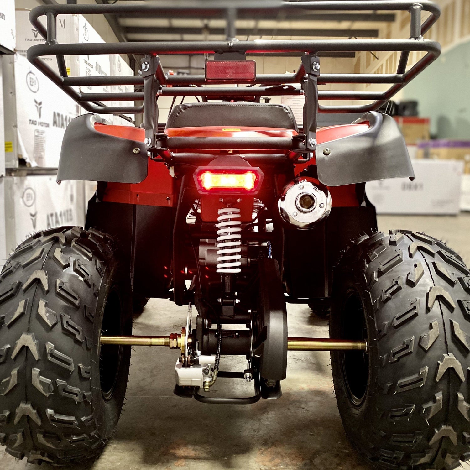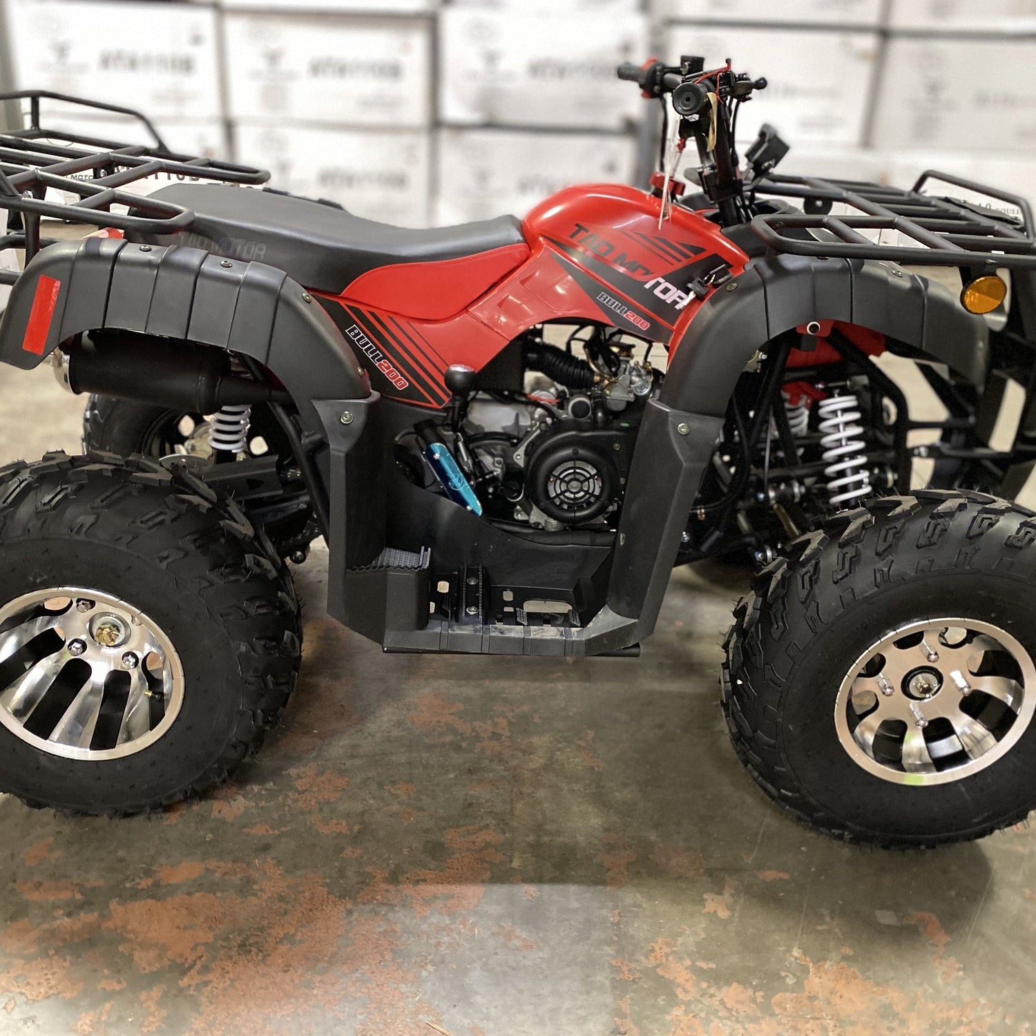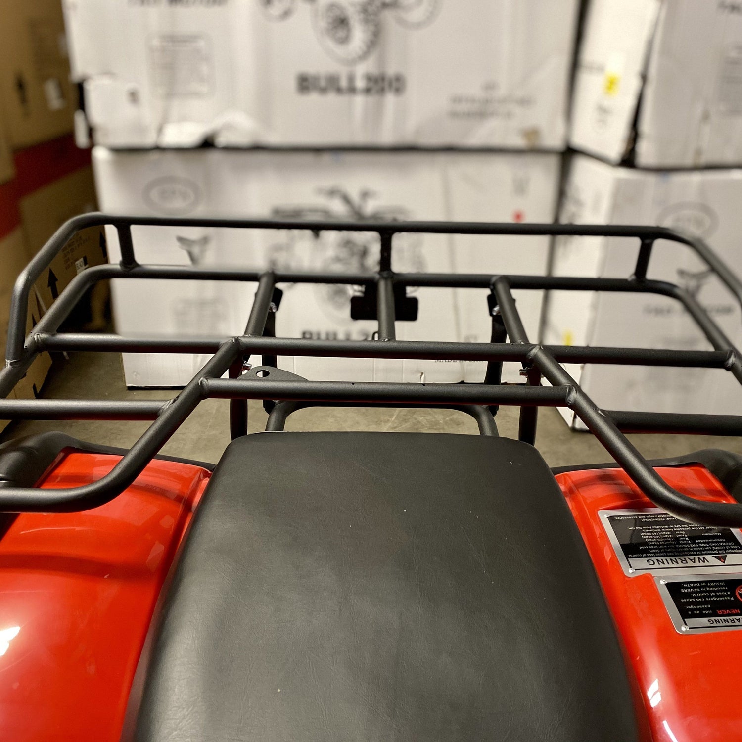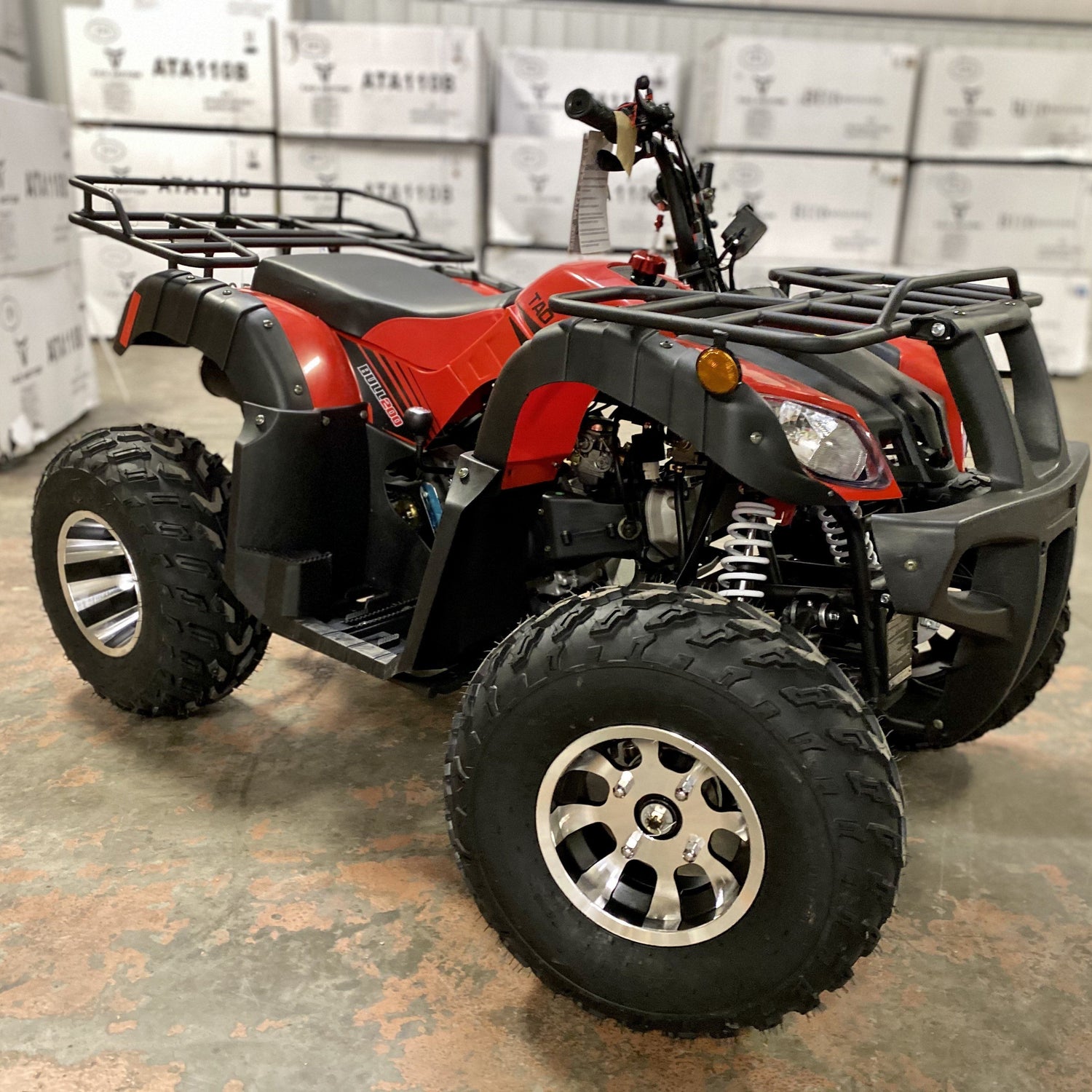 The TaoMotor Bull 200 ATV is designed for older teens and adults who need a reliable vehicle for off-roading and light utility work. Equipped with a 169cc 4-stroke engine, automatic transmission with reverse, and large off-road tires, this ATV delivers outstanding performance on rugged terrains. The Bull 200 also features a digital display, front and rear utility racks, and a ball hitch for added versatility.