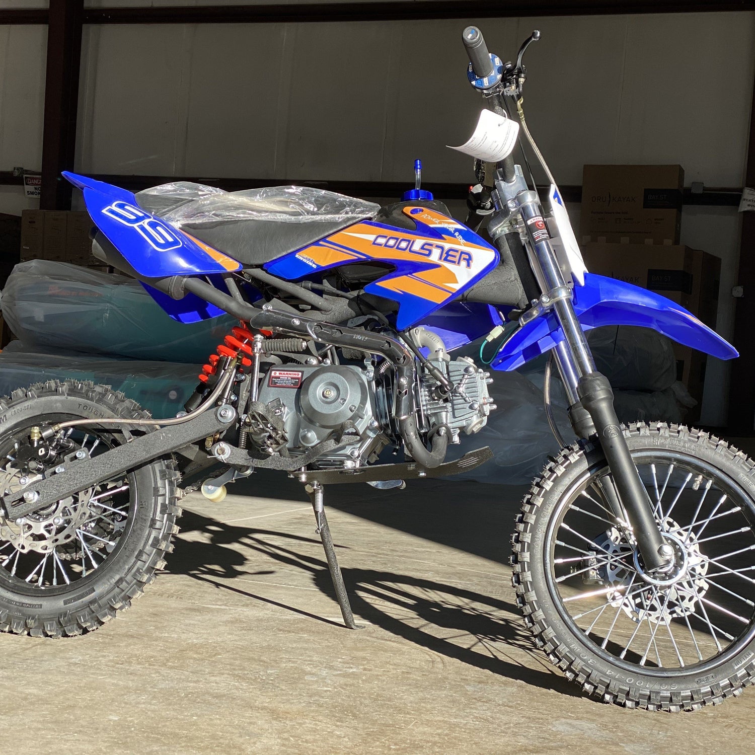 The Coolster X7 125cc Dirt Bike is built for young riders and teens who are ready to tackle the trails with power and performance. Powered by a 125cc semi-automatic engine, the X7 offers smooth, reliable performance with a top speed of ~40 MPH, making it perfect for off-road adventures. The semi-automatic transmission ensures easy shifting, allowing riders to focus on the ride while building their skills. With an upgraded front suspension, hydraulic disc brakes, and a taller gripper seat, this bike is designed to handle rough terrain while keeping riders comfortable and in control.