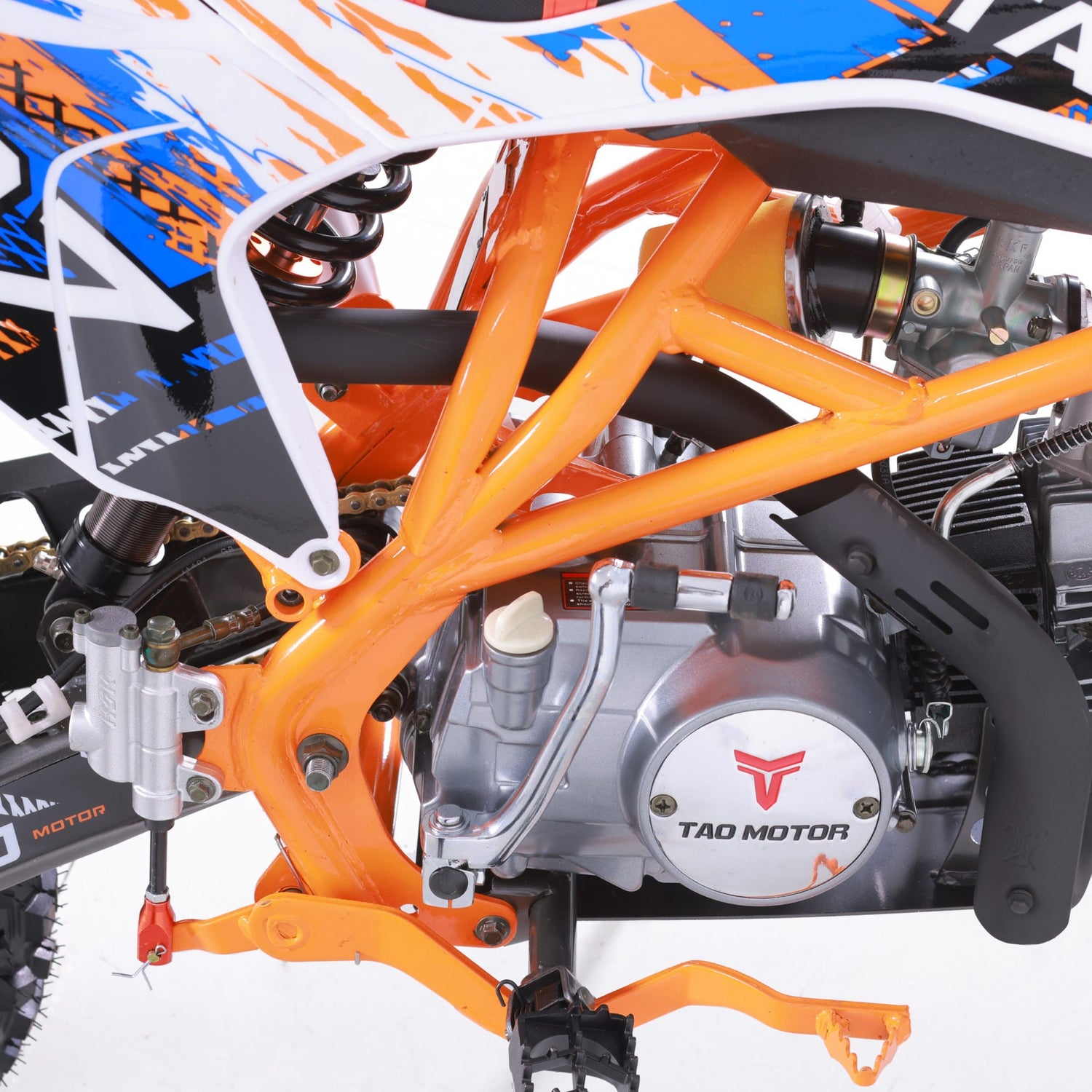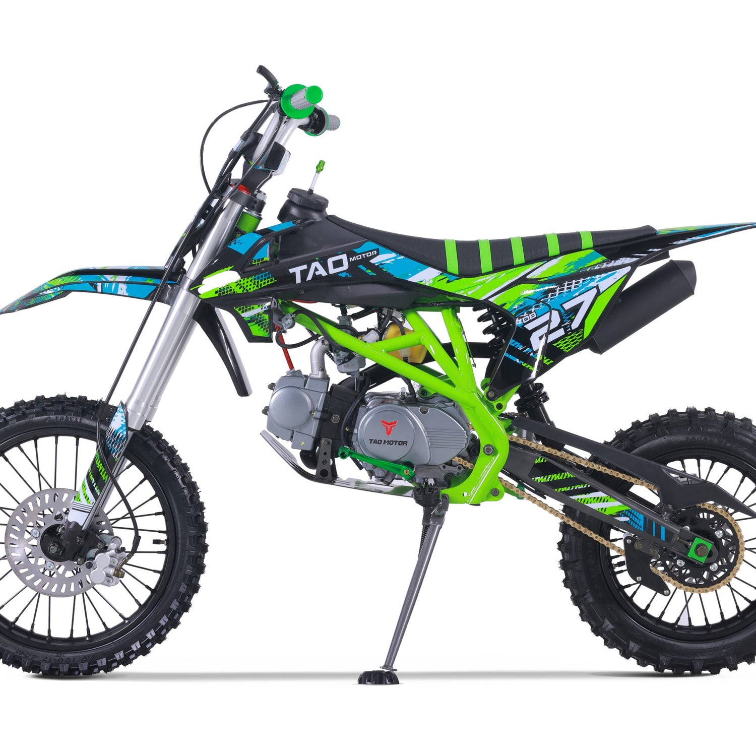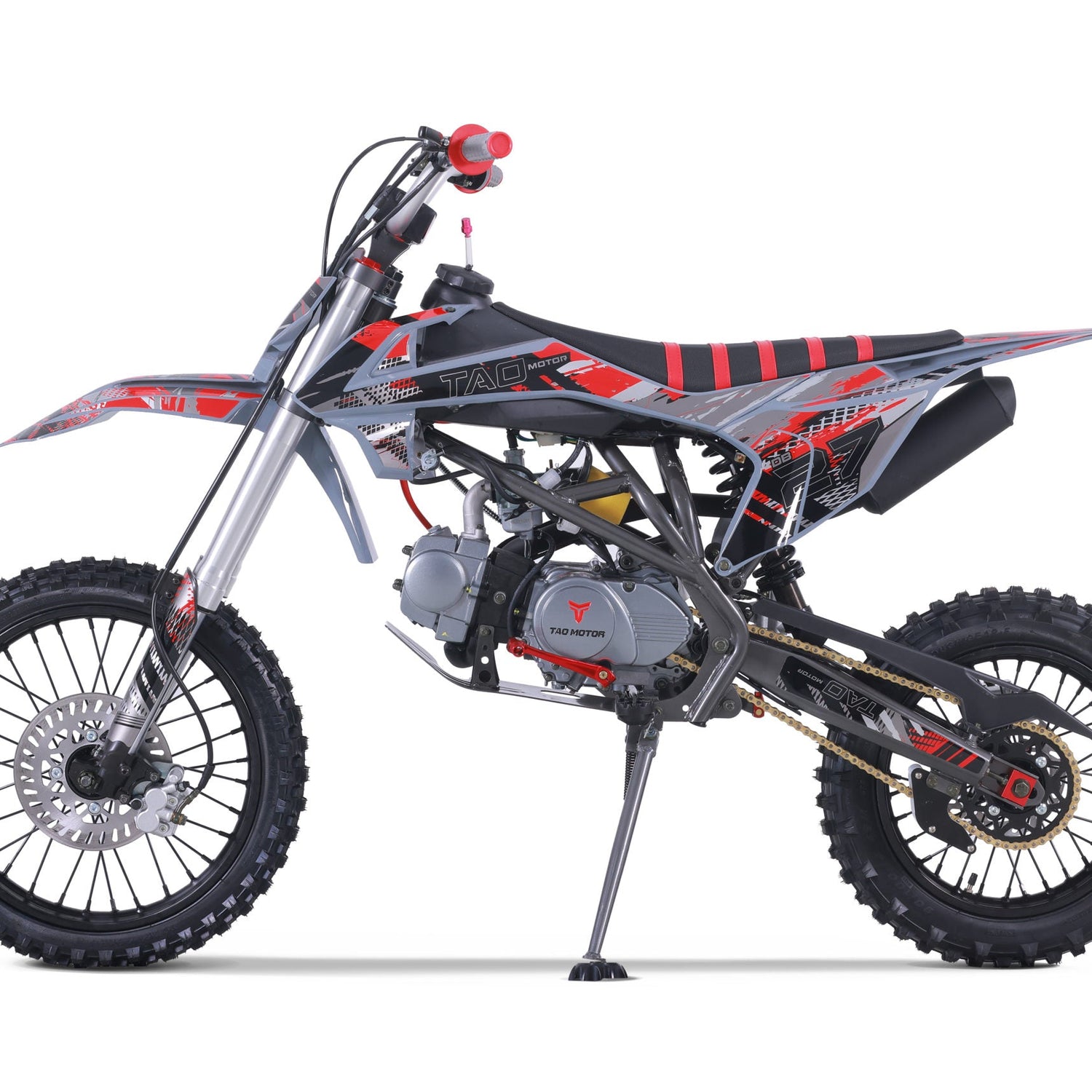 The Taomotor DB27 125cc Dirt Bike is back with a fresh, modern look and a host of top-notch upgrades. This manual 4-speed 125cc dirt bike features a powder-coated frame, softer handgrips, and a redesigned gripper seat, all designed to enhance both the bike's appearance and your riding experience. Whether you're a beginner or a seasoned rider, the DB27 delivers superior performance and comfort with its upgraded throttle assembly and folding adjustable levers, making it easier to get back in action after a spill.