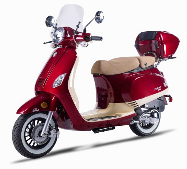 The Amigo Avenza 150cc Scooter, a step up from the Avenza 50cc, has all the power you're looking for to get around town! While looking good on the road, the Avenza 150 gets 60+ MPG, and reaches a max speed of 55+MPH. This scooter is perfect for your daily commute to work or your casual ride around town. Not only is the Avenza stylish, but it's also equipped with 10 inch wheels, whitewall tires, and plenty of storage under the seat, making it versatile as well.