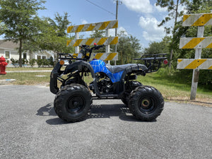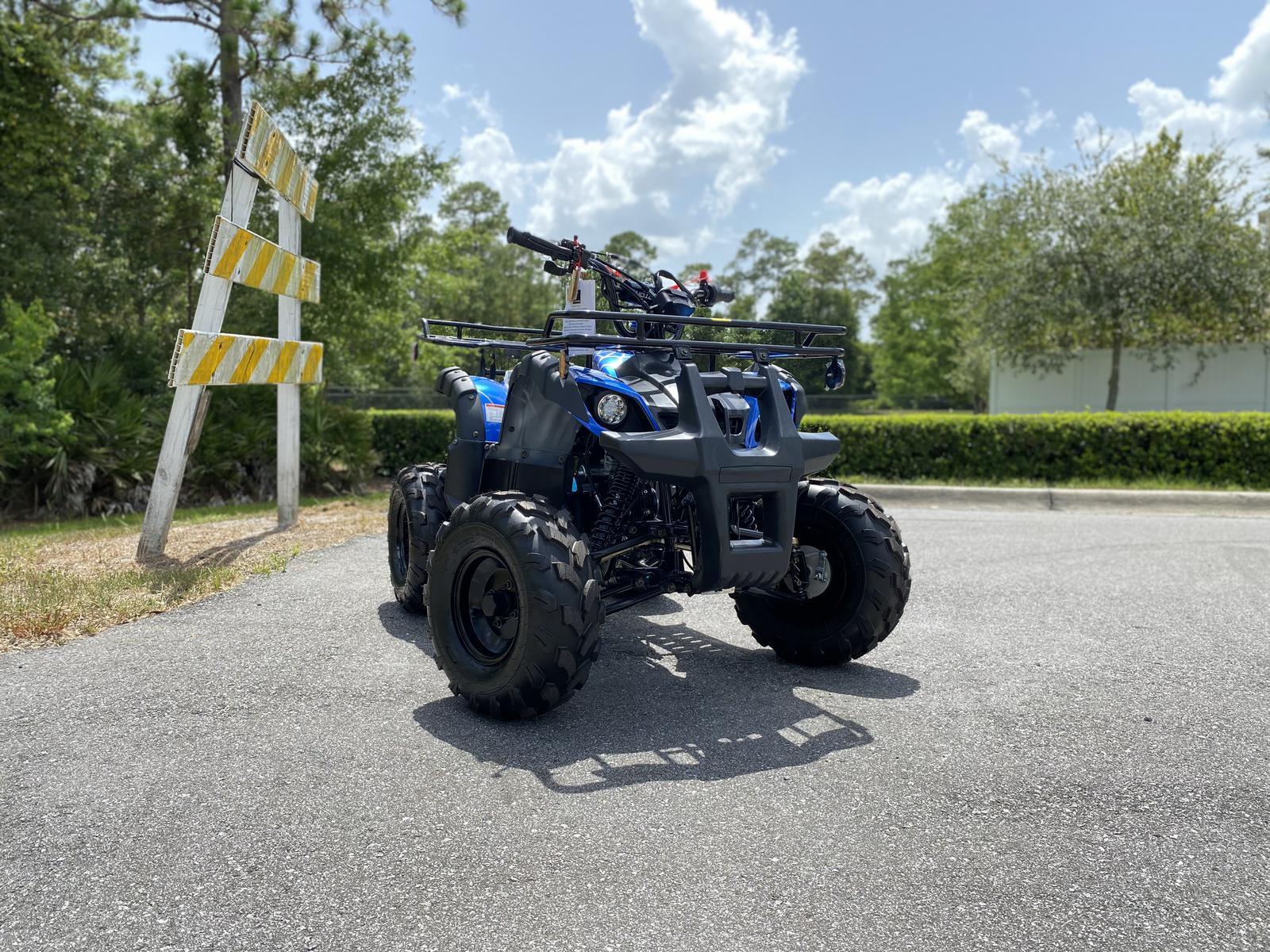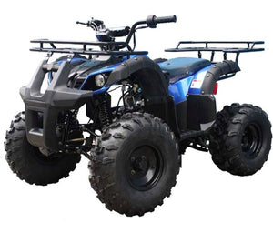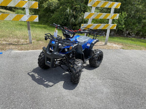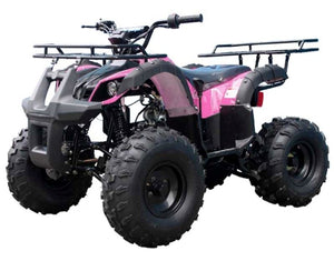 Check out this awesome TaoMotor Trooper 125 mid-size kids gas four wheeler made to have some fun! Have no fear parents, this atv comes with many safety features including a speed governor and remote kill switch. Other unique features include our industry-leading durable 4-stroke gas motor, utility front and rear racks for hunting or helping Dad on the farm, electric start, 90 day engine warranty, and many more awesome features!